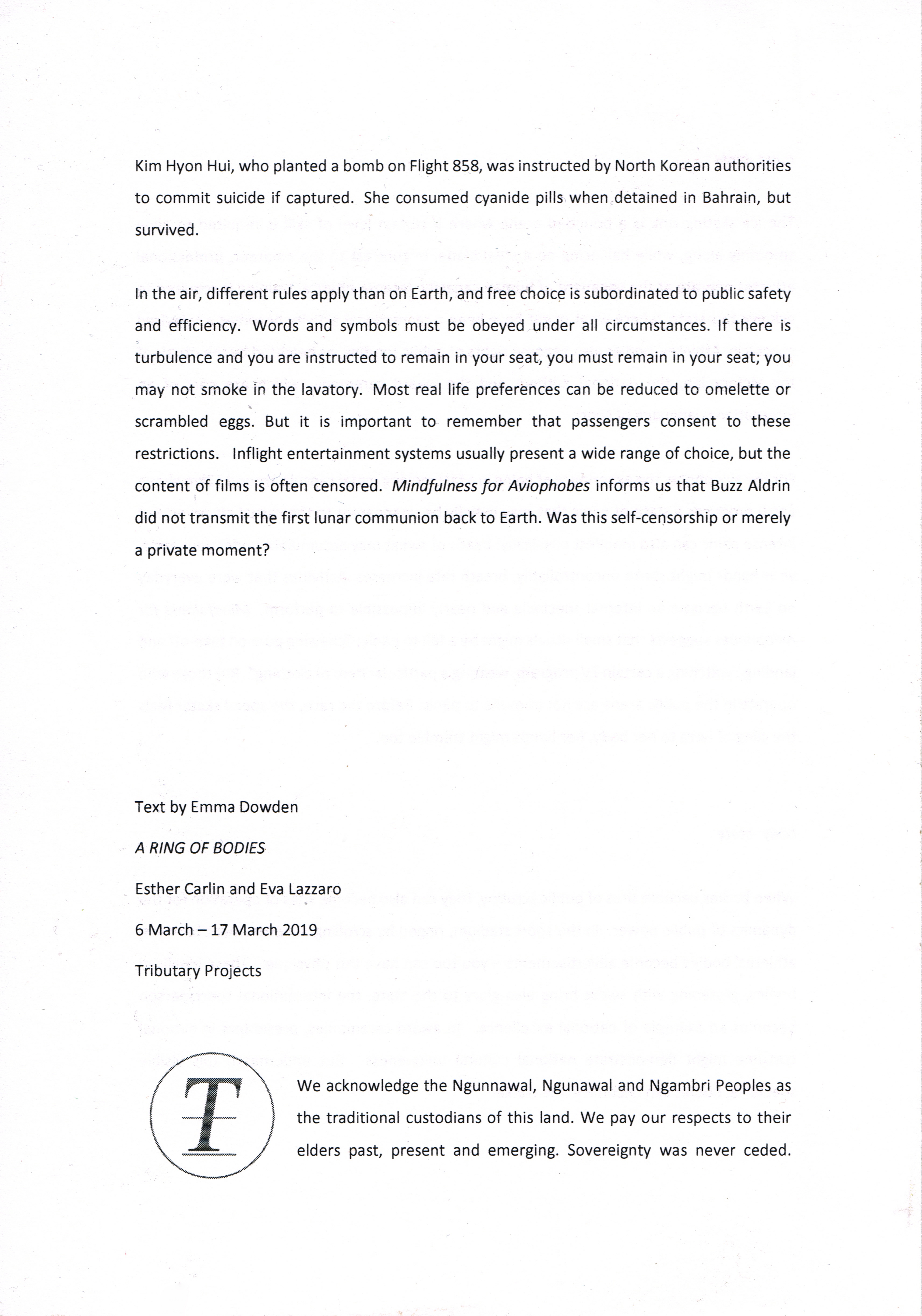 with Eva Lazzaro, installation view, Tributary Projects, Canberra, 2019